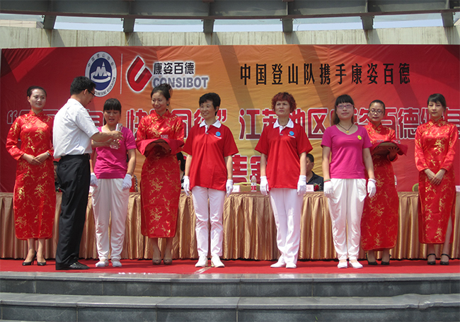 5月25日上午11時,中國登山隊攜手康姿百德舉辦的“全民健身·快樂同行”康姿百德第二套健身操邀請賽江蘇地區(qū)比賽在江蘇太倉舉行。來自江蘇各地區(qū)的18個代表隊共計600余名健身愛好者參加了此次比賽。 參加此次比賽的主要嘉賓有:中國登山協(xié)會副會長楊文祥、原張家港工商局局長焦兀、太倉市城廂鎮(zhèn)工商分局書記楊振華、太倉市保護消費者協(xié)會秘書長鄒雁、太倉曲藝指導委員會秘書長徐兆群、康姿百德公司董事長、總經(jīng)理李銀祥等。 中國登山隊攜手康姿百德“全民健身·快樂同行”大型公益活動,于2012年在全國開展以來,受到了社會各方面的廣泛關注。為了將“全民健身·快樂同行”大型公益活動進一步引向深入,讓更多的人走出家門,參加全民健身運動,中國登山隊,秦皇島康姿百德高新技術開發(fā)有限公司,決定聯(lián)合舉辦“全民健身·快樂同行”康姿百德健身操邀請賽,江蘇地區(qū)是本次邀請賽初賽的第一站。 在比賽中,身著紅色演出服的青年歌手楊德朗站在車上出場,演唱了他的原創(chuàng)歌曲《最美中國人》。這首歌曲是康姿百德第二套健身操的背景音樂之一,全體參賽的健身愛好者隨著音樂而舞動,統(tǒng)一的著裝、整齊的動作、飽滿的熱情,將本次比賽推向了高潮。 經(jīng)評比,18個代表隊分獲“最佳表演獎”、“團隊建設獎”、“最佳組織獎”等獎項,這些健身操愛好者將在9月份來到秦皇島參加“全民健身·快樂同行”康姿百德健身操邀請賽的展演,勢將引起新一輪的康姿百德健身熱潮。