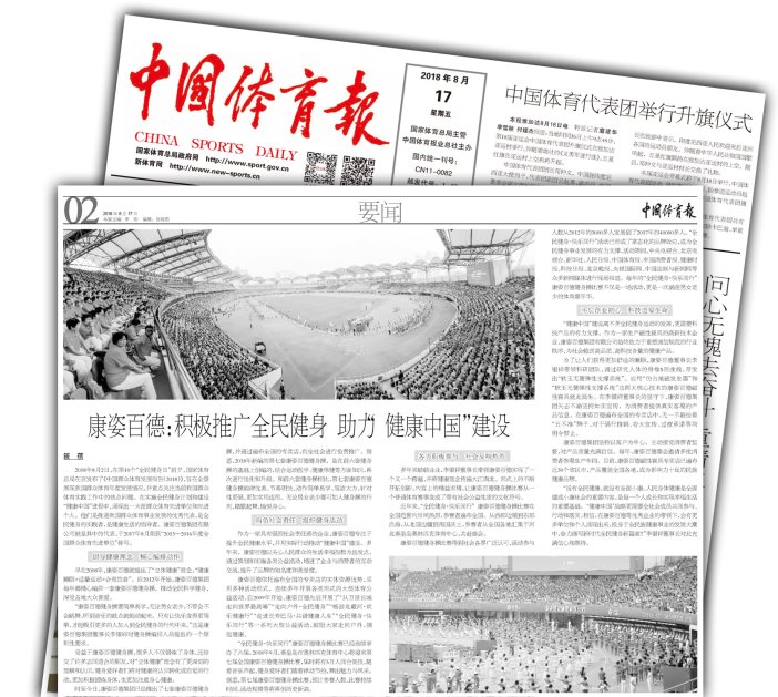 2018年8月17日,《中國(guó)體育報(bào)》對(duì)康姿百德集團(tuán)有限公司及“全民健身·快樂(lè)同行”全國(guó)康姿百德健身操比賽進(jìn)行了報(bào)道。以下是報(bào)道全文: