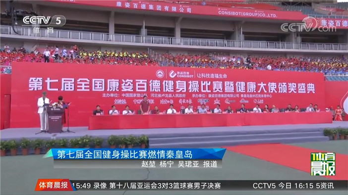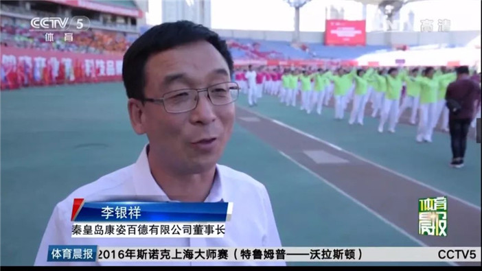 2016年,CCTV-5體育頻道報(bào)道康姿百德第五屆“全民健身 快樂(lè)同行”健身公益活動(dòng)。