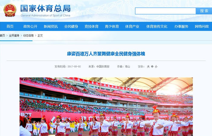 國家體育總局網(wǎng)站登載康姿百德全民健身活動信息
