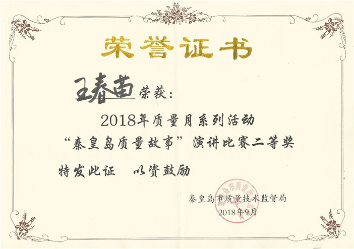 2018年9月26日,“秦皇島質量故事”演講比賽總決賽隆重召開。為響應國家2018年質量月活動,康姿百德積極參與,并榮獲二等獎及優(yōu)秀組織獎。