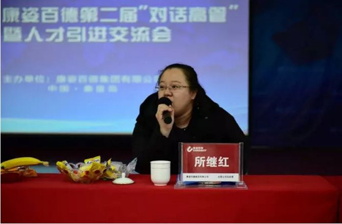 康姿百德集團人力資源中心總經理劉婷在交流會上發(fā)言