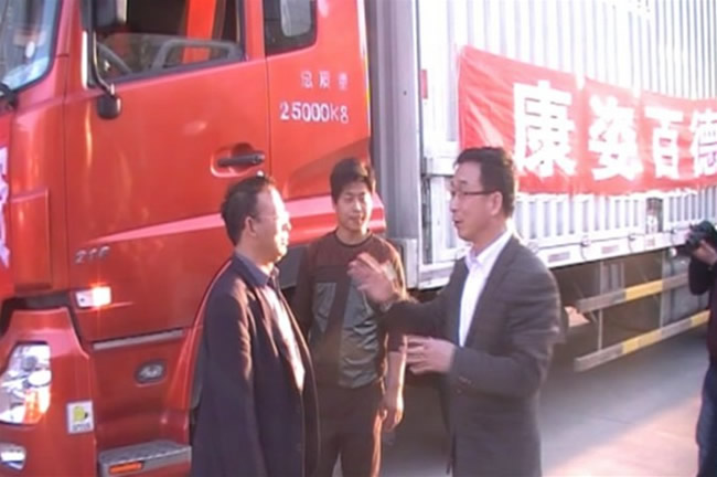 25日上午9點(diǎn),物資車(chē)到達(dá)石家莊。石家莊康姿百德總代理李志華,代表新華區(qū)、裕華區(qū)、橋西區(qū)、橋東區(qū)、長(zhǎng)安區(qū)、開(kāi)發(fā)區(qū)、辛集市、平山縣、藁城縣、正定縣等地的代理商將愛(ài)心物資裝上貨車(chē)