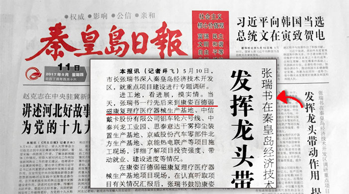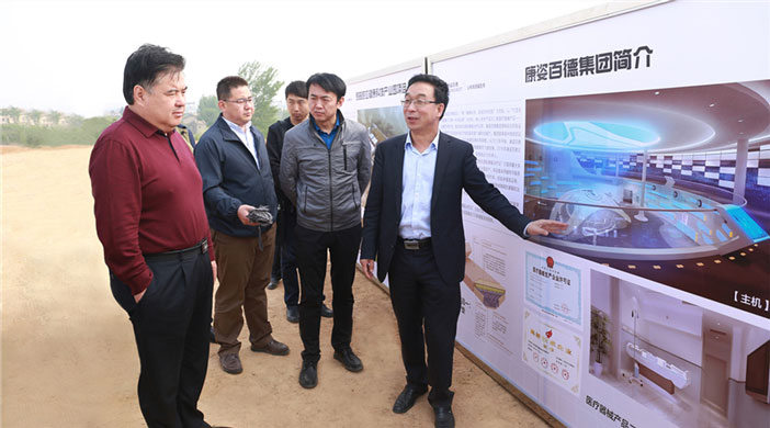 2017年5月10日,秦皇島市長張瑞書深入康姿百德第二科技園,就項(xiàng)目建設(shè)情況進(jìn)行調(diào)研,康姿百德集團(tuán)董事長李銀祥等集團(tuán)領(lǐng)導(dǎo)陪同調(diào)研。