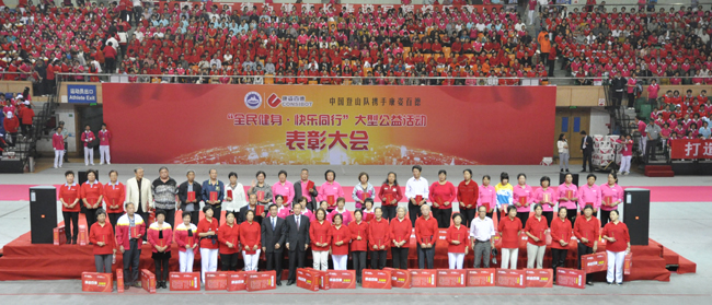 表彰大會頒獎環(huán)節(jié)現(xiàn)場氣氛熱烈。大會對在全民健身活動中做出突出貢獻,關(guān)心支持全民健身事業(yè),積極參與全民健身志愿服務(wù)的500名志愿者給予了表彰和獎勵。這些健康大使根植于百姓,宣傳于百姓,服務(wù)于百姓,成為群眾喜愛的健康專家,為提高人民的健康水平,推進全民健身與發(fā)展做出了突出的貢獻。每一位獲獎?wù)叨寂d高采烈,經(jīng)久不息的掌聲是對他們辛勤耕耘的最高贊頌。