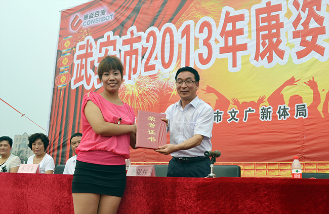 8月2日上午,邯鄲武安市武安廣場五彩斑斕、人聲鼎沸。隨著熟悉的節(jié)拍,一支支代表隊舞動著優(yōu)美的舞姿,精神飽滿,動作整齊,數(shù)千人徜徉在一片舞的海洋之中,盡情享受康姿百德健身操帶給人們的健康和快樂。 為迎接第五個“全民健身日”的到來,引導廣大群眾積極參加體育健身活動,武安市文廣新體局、康姿百德邯鄲分公司聯(lián)合在武安廣場舉行了康姿百德第二套健身操比賽。來自武安市各健身站點的24支代表隊共計658人參加了比賽,整個比賽精彩紛呈,高潮迭起,產(chǎn)生了良好的社會反響??底税俚鹿径麻L、總經(jīng)理李銀祥在百忙之中出席比賽并致辭。 李銀祥在致辭中首先對武安市各級領導、社會各界給予康姿百德公司的支持和康姿百德健身操的厚愛表示感謝!李銀祥說,康姿百德公司是一家研發(fā)生產(chǎn)磁性健康寢具的高科技企業(yè),公司在高度重視產(chǎn)品質(zhì)量的同時,積極倡導“健康睡眠、適量運動、合理營養(yǎng)”三管齊下的“立體健康”理念,研究創(chuàng)編了康姿百德健身操,并通過不斷地完善改進,于今年3月份推出了康姿百德第二套健身操,受到了全國各地廣大健身愛好者的喜愛。目前,康姿百德健身操在全國已有4000多個健身場所、參與人數(shù)300多萬,并被許多機關單位和中小學、幼兒園作為工(課)間操,這既是對我們的激勵,也是對我們的鞭策。我們將繼續(xù)把康姿百德的各項工作做得更扎實、更出色。