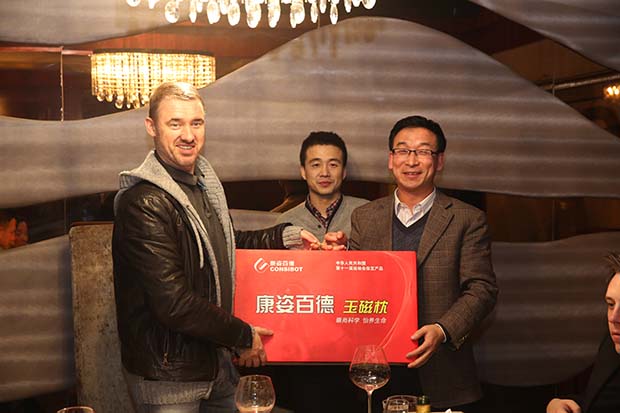 經(jīng)過四天的激烈角逐,我公司贊助的第二屆中式八球國際大師邀請賽于1月5日晚在秦皇島奧體中心落下帷幕,英格蘭選手加雷斯·波茨以其高超的球技和良好的素質(zhì),將本屆冠軍獎杯和30萬元獎金收入囊中。 總決賽結(jié)束,我公司董事長、總經(jīng)理李銀祥出席了選手們的慶功宴會,對選手們精湛的球技和出色的表現(xiàn)表示欣賞和贊許。宴會期間,李銀祥還向“臺球皇帝”亨德利贈送了康姿百德玉磁紀(jì)念枕,并手捧精心制作的印有康姿百德LOGO的工藝品與亨德利合影留念。