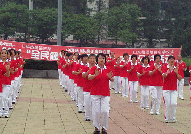 8月8日,山東招遠(yuǎn)的700多名康姿百德健身操愛好者和當(dāng)?shù)厥忻?,在市政府廣場載歌載舞,喜迎“全民健身日”,向人們倡導(dǎo)康姿百德公司提出的“健康睡眠+適量運(yùn)動+合理飲食”的立體健康理念,傳遞著健康向上的正能量。 當(dāng)天上午8:30分,由當(dāng)?shù)乜底税俚聭敉饨∩頎I組織舉辦的2014“全民健身 快樂同行”大型公益活動招遠(yuǎn)地區(qū)啟動儀式在這里隆重舉行,招遠(yuǎn)經(jīng)銷商向廣大市民宣布了本次活動的目的和意義,當(dāng)?shù)乜底税俚陆∩頎I隊員進(jìn)行了健身操表演,贏得了在場觀眾的普遍贊賞。大家一致認(rèn)為,康姿百德健身操節(jié)拍有力,動作到位,音樂優(yōu)美,具有適宜人群廣泛、簡單易學(xué)的特點(diǎn),是市民健身鍛煉的好項目,今后要加入到這個健身隊伍中,為推廣全民健身貢獻(xiàn)力量。 本次活動得到了當(dāng)?shù)赜嘘P(guān)部門和媒體的重視,招遠(yuǎn)市老體協(xié)等單位領(lǐng)導(dǎo)出席了啟動儀式,招遠(yuǎn)新聞對本次活動進(jìn)行了報道。