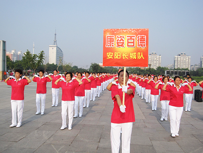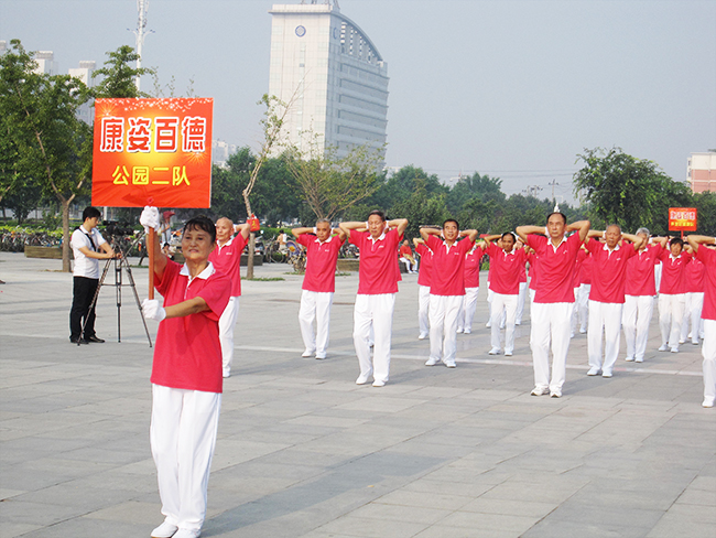 積極備戰(zhàn)9月份在秦皇島市舉行的2013“全民健身·快樂同行”大型公益活動總結表彰大會,進一步提高廣大群眾的全民健身意識、推廣普及全民健身活動,康姿百德健身操展演比賽活動近日相繼在安陽市舉行,深受人們的喜愛。 8月15日上午,康姿百德第二套健身操大賽在安陽市東區(qū)圖書館、博物館兩個廣場舉行,來自各個健身站點的520名康姿百德健身操隊員,在烈日的炙烤下,雖然個個汗流浹背,但卻精神抖擻、興奮不已。伴隨著一曲曲節(jié)奏明快、耳熟能詳?shù)囊魳罚?3支代表隊輪流上場、各展風采,隊員們時而伸臂擴胸,時而扭腿墊步,動作嫻熟整齊,隊形變幻奇妙,比賽現(xiàn)場猶如一幅幅美麗的畫卷,讓人應接不暇,大飽眼?!?br style="margin:0px;padding:0px;" /> 此前,在8月8日舉行的安陽市“全民健身日”啟動儀式上,由450人組成的康姿百德健身操隊伍,以其龐大的陣容和精彩的演出,為人們傳遞了健康、快樂和幸福,得到了廣大群眾的一致好評。 據(jù)悉,8月24日,康姿百德產(chǎn)品說明會又將在安陽市兩館廣場舉行,屆時將再次舉行康姿百德健身操展演,并為在康姿百德第二套健身操大賽中獲獎的代表隊頒獎。