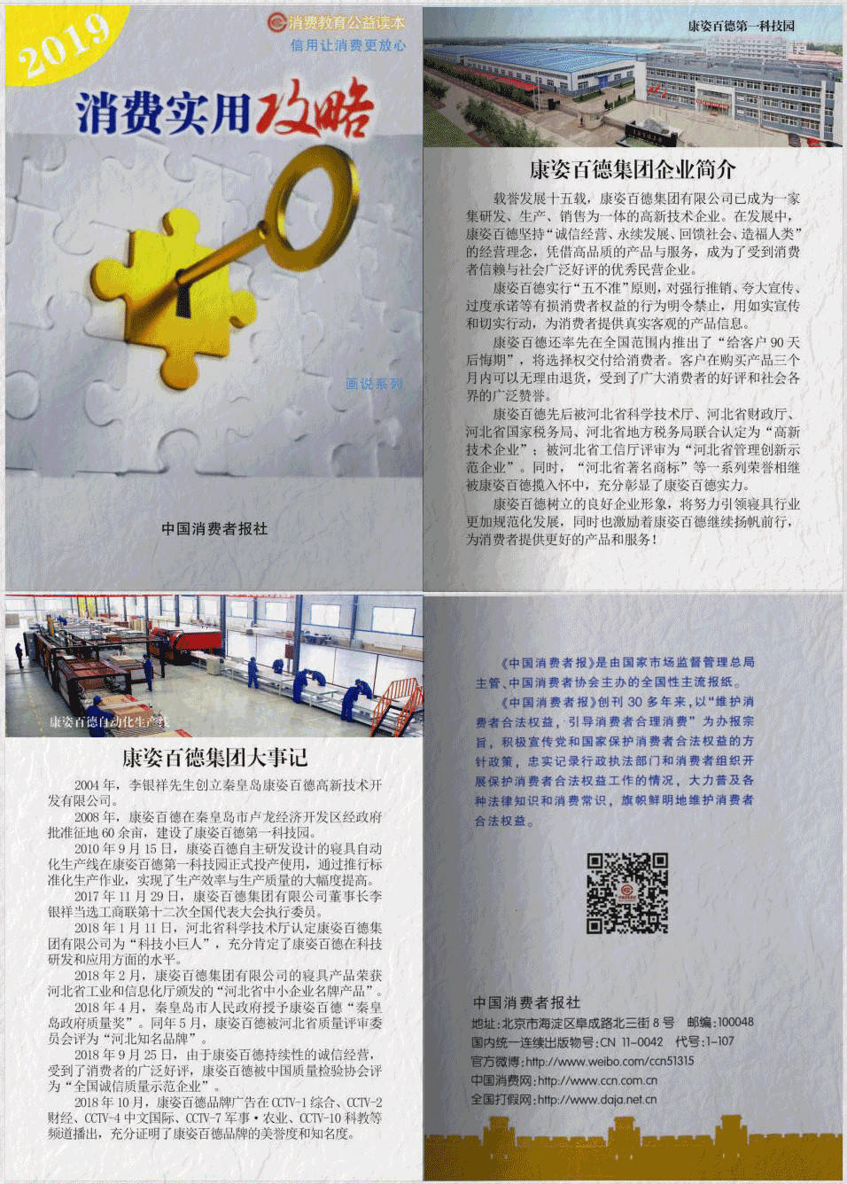 中國消費(fèi)者報(bào)社印發(fā)的普法手冊《消費(fèi)實(shí)用攻略》、《維權(quán)之劍》,均對康姿百德進(jìn)行了報(bào)道。