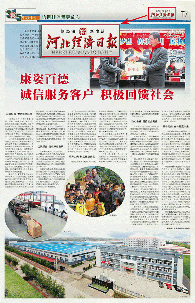 以下是《河北經(jīng)濟(jì)日報(bào)》以“誠信服務(wù)客戶,積極回饋社會”為主題對康姿百德的報(bào)道。