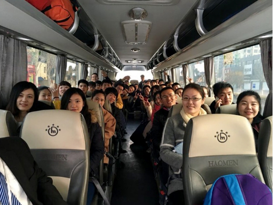 △學(xué)員們乘坐公司大巴前往康姿百德西點(diǎn)商學(xué)院