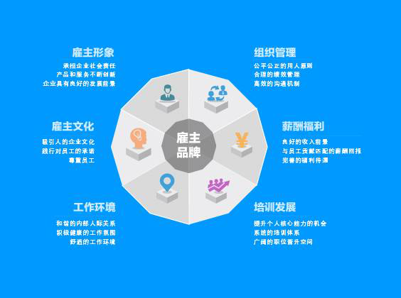 越來越多的雇主和雇員會(huì)傾向于在共同價(jià)值觀的引導(dǎo)下,為了共同的目標(biāo)和追求聚集在一起??底税俚鹿椭髌放埔苍诓粩噱N煉中逐漸升華,從組織管理、薪酬福利、培訓(xùn)發(fā)展、工作環(huán)境、文化與形象等方面,為求職者和雇員營造出一個(gè)充滿活力的雇主品牌形象。