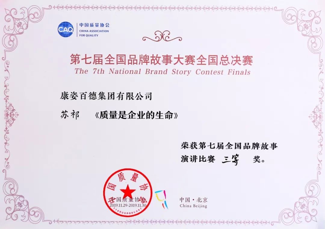 品牌是企業(yè)競(jìng)爭(zhēng)力的標(biāo)志,質(zhì)量是企業(yè)品牌聲譽(yù),也是迎接企業(yè)發(fā)展、面臨挑戰(zhàn)的關(guān)鍵因素。滿載著全國品牌故事大賽的榮譽(yù),我們將更加堅(jiān)定、更加專業(yè)化地做好品牌升級(jí),讓“康姿百德”品牌與世界共享,所有康姿百德人也將助力康姿百德推進(jìn)品牌建設(shè),持續(xù)打造中國品牌核心競(jìng)爭(zhēng)力,再創(chuàng)中國制造品牌享譽(yù)世界的新輝煌!