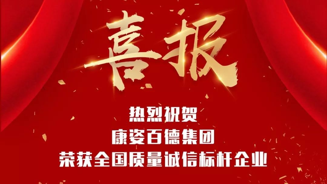 康姿百德榮獲“全國質(zhì)量誠信標桿企業(yè)”