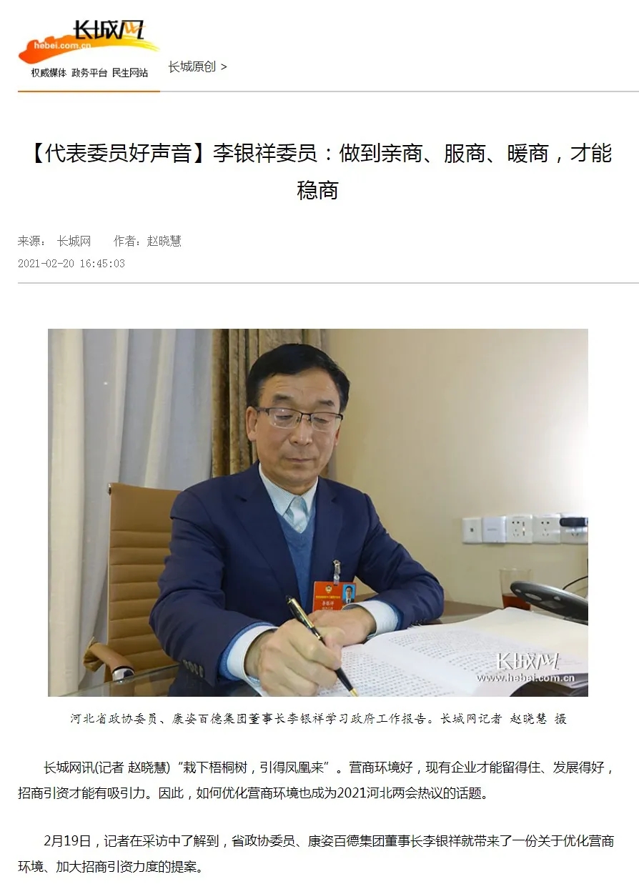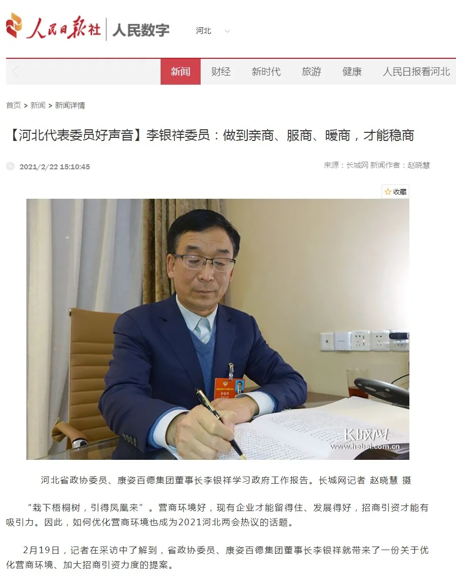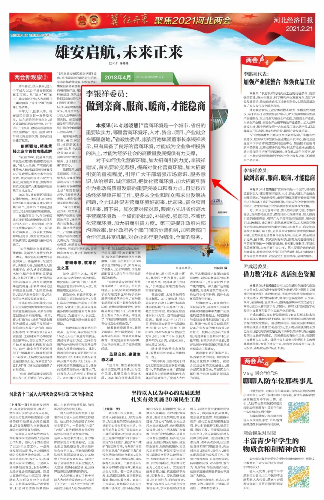 在河北省兩會(huì)政協(xié)委員駐地,李銀祥委員接受了河北經(jīng)濟(jì)日?qǐng)?bào)的專訪。在受訪的過程中,李銀祥董事長針對(duì)2021河北兩會(huì)如何優(yōu)化營商環(huán)境的熱議話題,簡述了關(guān)于優(yōu)化營商環(huán)境、加大招商引資力度的提案。李銀祥董事長的提案還被刊登在了2021年2月21日的河北經(jīng)濟(jì)日?qǐng)?bào)上。