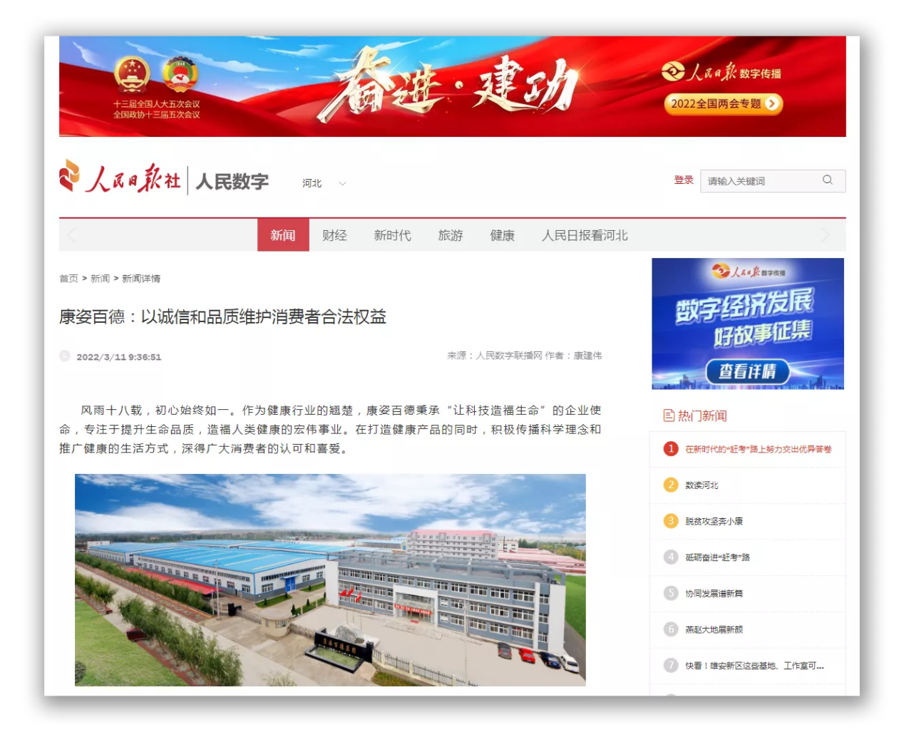 同時,人民日報(bào)社數(shù)字網(wǎng)、長城網(wǎng)冀云客戶端等多家媒體也對康姿百德進(jìn)行了全方位報(bào)道。