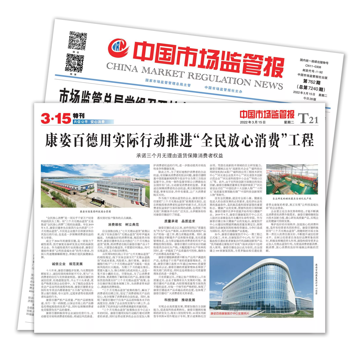 《中國市場監(jiān)管報(bào)》由國家市場監(jiān)督管理總局主管,是一張面向全國工商行政管理和市場監(jiān)管部門系統(tǒng)、廣大工商企業(yè)和消費(fèi)者讀者的經(jīng)濟(jì)法制類報(bào)紙,是宣傳工商行政管理工作、詮釋工商行政管理法律法規(guī)的權(quán)威媒體??底税俚履軌驑s登《中國市場監(jiān)管報(bào)》,說明康姿百德在消費(fèi)者維權(quán)方面所做出的突出貢獻(xiàn),得到了社會各界的充分肯定,也贏得了廣大消費(fèi)者的贊譽(yù)。