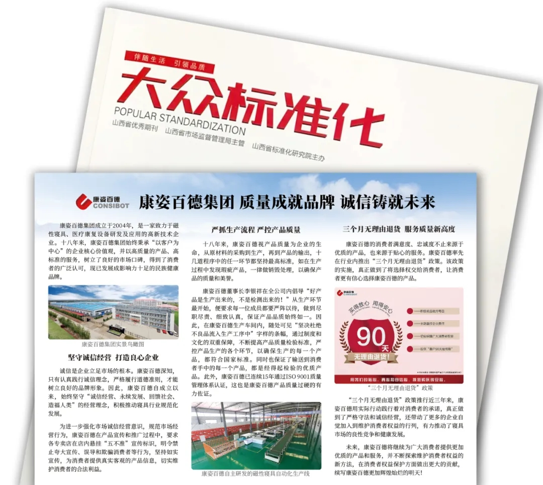 山西市場監(jiān)督管理局唯一發(fā)行的期刊《大眾標(biāo)準(zhǔn)化》雜志,也對康姿百德進(jìn)行了報(bào)道。