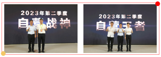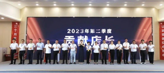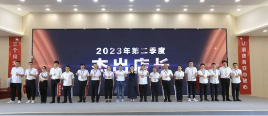 培訓(xùn)會(huì)結(jié)束后,自營(yíng)公司還舉辦了2023年第二季度頒獎(jiǎng)典禮。頒獎(jiǎng)典禮上,李銀祥董事長(zhǎng)對(duì)自營(yíng)公司取得的優(yōu)異成績(jī)、對(duì)自營(yíng)經(jīng)理和店長(zhǎng)們的辛勤付出給予了充分的肯定與認(rèn)可,并親自為獲獎(jiǎng)的自營(yíng)店長(zhǎng)和經(jīng)理頒獎(jiǎng),同時(shí)也鼓勵(lì)其他經(jīng)理和店長(zhǎng)以先進(jìn)為榜樣,銳意進(jìn)取、奮勇向前,為公司做出更加卓越的貢獻(xiàn)!