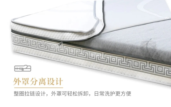 康姿百德清雅款床墊還采用上下外罩分離設(shè)計(jì),拉開拉鏈后可將床墊外套拆分成上下兩部分,拆裝清潔更方便。