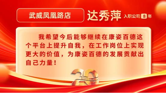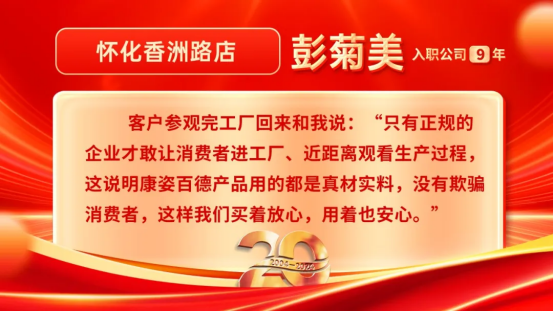 康姿百德20周年專賣店員工的系列故事會(huì)持續(xù)推出,讓我們一起期待其他地區(qū)專賣店員工代表的精彩故事吧!