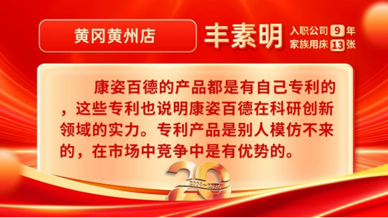 康姿百德20周年專賣店員工的系列故事會(huì)持續(xù)推出,讓我們一起期待其他地區(qū)專賣店員工代表的精彩故事吧!