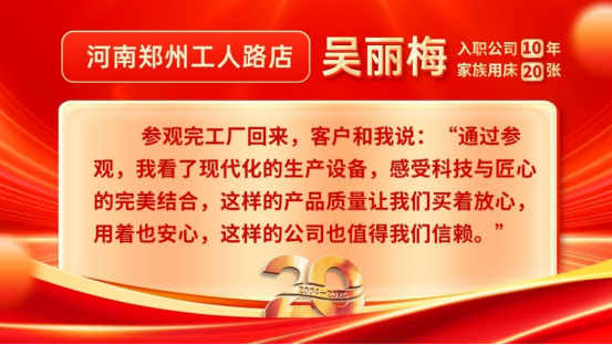 今年是康姿百德集團(tuán)成立20周年。在20年的發(fā)展歷程中,有這樣一群人,他們?cè)谑袌鼋?jīng)營管理過程中,深刻貫徹以客戶為中心的理念,始終把優(yōu)質(zhì)的服務(wù)融于門店經(jīng)營的每個(gè)環(huán)節(jié),也因此得到了客戶的贊賞和認(rèn)可。他們就是康姿百德專賣店的員工。本期和您分享的是康姿百德河南地區(qū)和福建地區(qū)專賣店員工代表的故事。