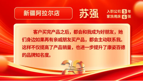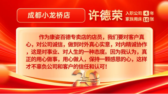 康姿百德20周年專賣店員工的系列故事會(huì)持續(xù)推出,讓我們一起期待其他地區(qū)專賣店員工代表的精彩故事吧!