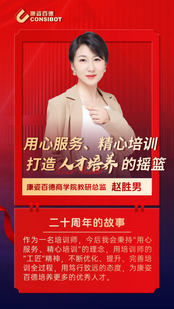 時間回溯到2012年,當大多數(shù)同齡人還在對未來的方向迷茫徘徊時,趙勝男已毅然決然地踏入了康姿百德的門檻,選擇了一條充滿挑戰(zhàn)與機遇的道路。從最初的培訓小白,到如今的教研總監(jiān),這背后是12年的不懈努力與默默耕耘。她深知,唯有專業(yè)和熱愛,才能讓她在培訓這條路上越走越遠,越走越穩(wěn)。