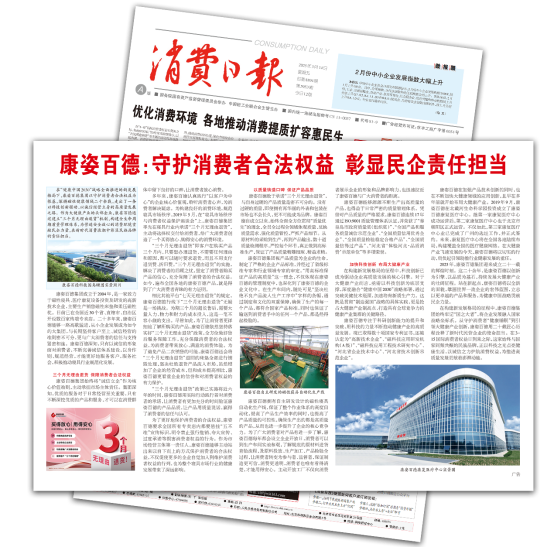 《消費日報》于1985年創(chuàng)刊,由國務院國有資產(chǎn)監(jiān)督管理委員會舉辦,中國輕工業(yè)聯(lián)合會主管主辦。康姿百德積極響應國家號召,主動維護消費者合法權益,僅2024年,消費日報就2次對康姿百德進行了專版報道。