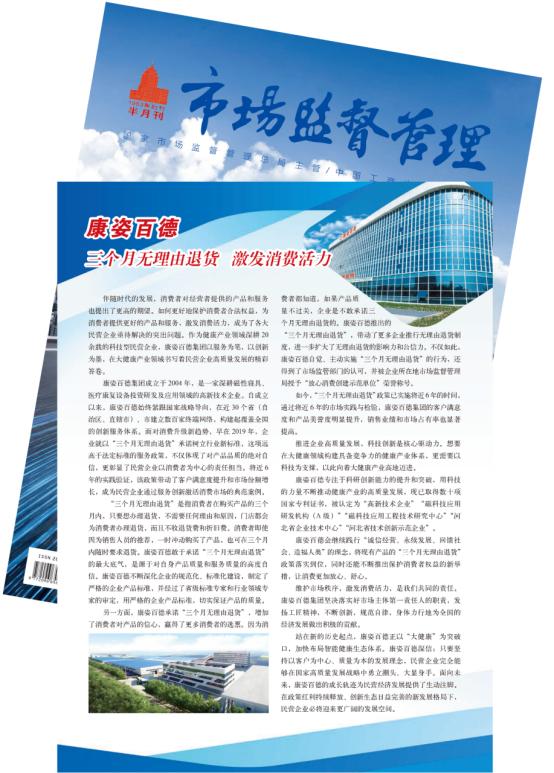 《市場(chǎng)監(jiān)督管理》半月刊以《康姿百德:三個(gè)月無(wú)理由退貨 激發(fā)消費(fèi)活力》為題,全面、詳細(xì)地報(bào)道了康姿百德。