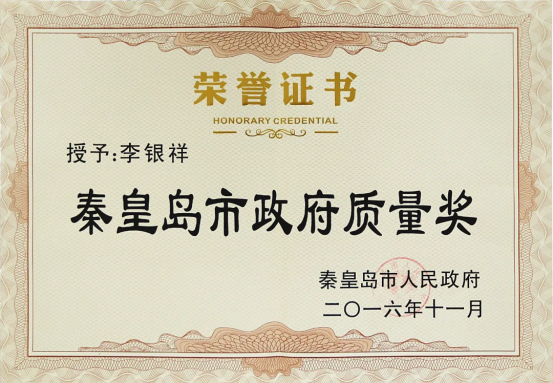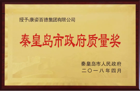 康姿百德在質(zhì)量水平、創(chuàng)新能力、品牌影響力以及效益等方面均取得突出成績并達到國內(nèi)先進水平,榮獲秦皇島市政府質(zhì)量獎(組織獎),董事長李銀祥榮獲秦皇島市政府質(zhì)量獎(個人獎)。