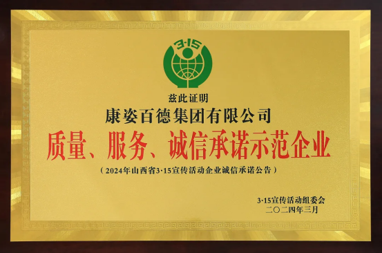 山西315宣傳活動組委會為樹立行業(yè)典范,引導(dǎo)其他企業(yè)學(xué)習(xí)其質(zhì)量管理、服務(wù)規(guī)范及社會責(zé)任實踐,形成“以點帶面”的示范效應(yīng),設(shè)置了“質(zhì)量 服務(wù) 誠信承諾示范企業(yè)”榮譽稱號??底税俚乱愿哔|(zhì)量的產(chǎn)品和優(yōu)異的服務(wù)質(zhì)量,成功獲獎。